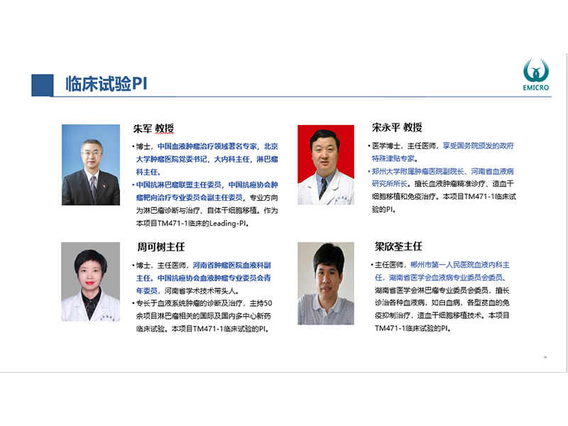 目前,BTK抑制劑已進(jìn)入抗淋巴瘤I期臨床試驗(yàn)階段。北京大學(xué)腫瘤醫(yī)院朱軍教授、鄭州大學(xué)第一附屬醫(yī)院宋永平教授、河南省腫瘤醫(yī)院周可樹(shù)教授、郴州市第一人民醫(yī)院梁欣荃教授,擔(dān)任該項(xiàng)目臨床PI(主要研究者)。